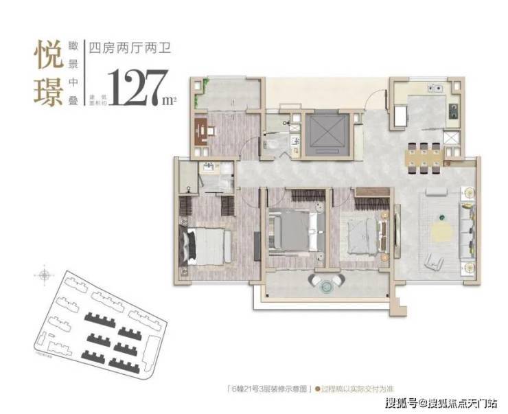 这个四房虽然建面只有127㎡,但因为是5层叠墅的高得房率,以及室内空间的高效利用,其功能和尺度感,给人的感觉十分惊艳。