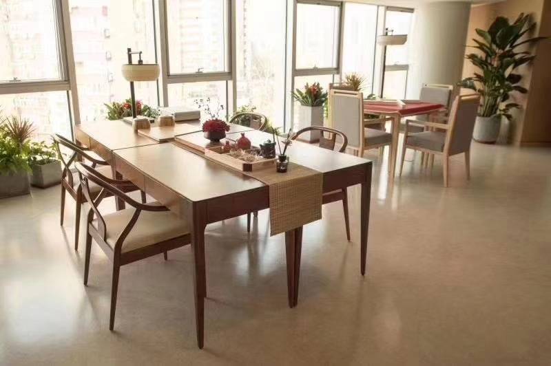 ,室内采用古典家具搭配电动升降沙发,配备橱柜、冰箱、电热水壶等全套家电;独立卫生间配备整体淋浴房、高档卫生洁具及智能温水洗净烘干抗菌坐便器,24小时提供饮用水与生活热水,细节之处彰显品质;每个楼层均设开放厨房、起居室,增强居家感;配套交谊室、图书室、手工艺室、舞蹈室、乒乓球室、台球室、电脑教室、多功能厅及儿童娱乐区,满足长者文娱休闲与家属互动需求。