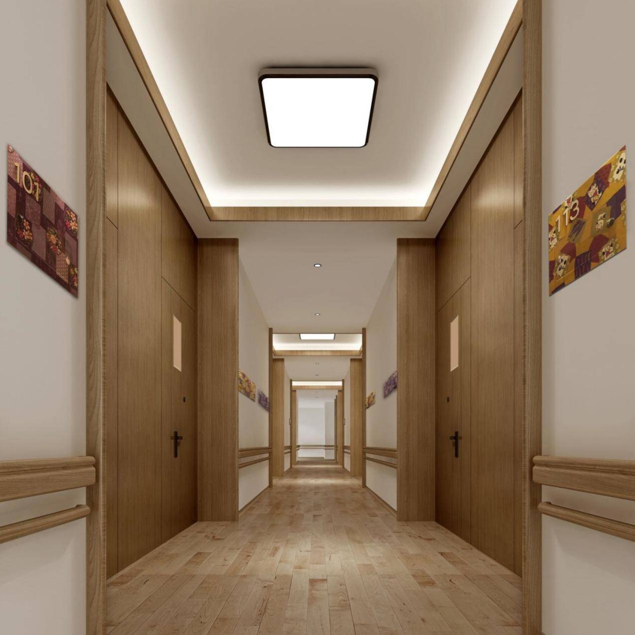 ,总建筑面积约12950平方米,设203个房间共398张床位,涵盖双人房、单人房、日间照料床位,满足不同照护需求;全区采用全方位无障碍适老化配置,居室人性化设计,24小时紧急呼叫系统全覆盖,动静分离,保障长者生活安全、便捷、舒适;配套30000平方米美学公园,绿植繁茂、景致优美,天然氧吧,日常休闲散步、修身养性的绝佳场所。