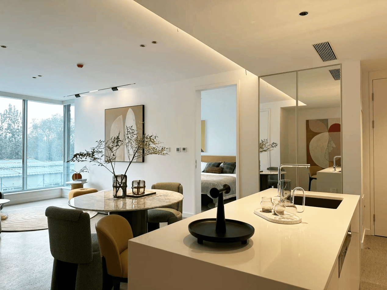 房间设施全面升级,配备正负压户式新风系统、葡萄牙进口软木地板、全景落地窗、中央空调系统、地板供暖系统、24小时热水供应、风暖浴霸,居住舒适;全区域无障碍通行、地面防滑、安全扶手、拉绳按钮报警、感应夜灯,可识别楼层地毯、楼道安全扶手、智能门禁、智能门锁、可视对讲,全方位保障长者安全;室内配备嵌入式冰箱、嵌入式蒸烤一体机、嵌入式电磁炉、嵌入式洗碗机、抽油烟机、垃圾处理器、洗衣机、智能马桶、电动窗帘等全套高端家电,居家感拉满。