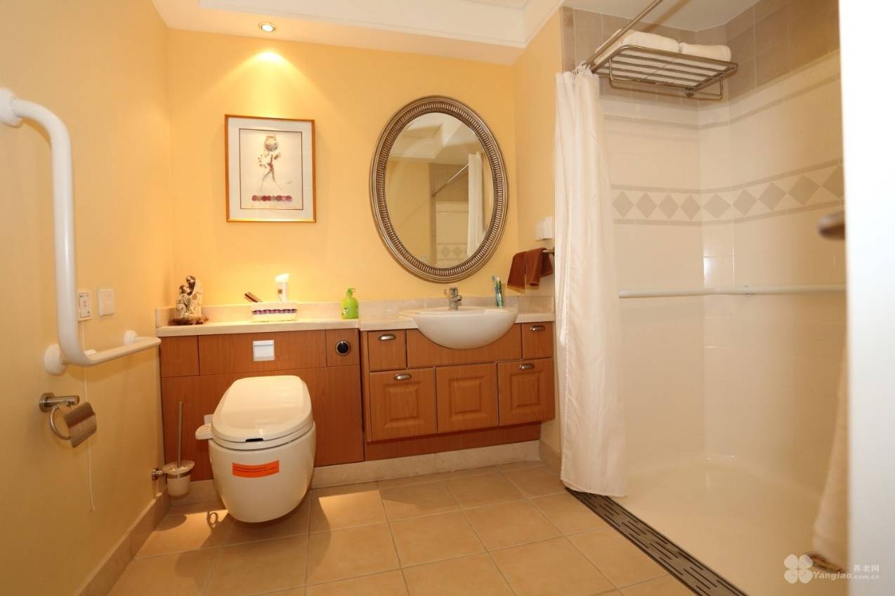 护理公寓:全屋护理床、防滑地板、墙面拉绳报警、毫米波雷达跌倒监测,浴室恒温花洒+助浴椅,适配失能长辈;