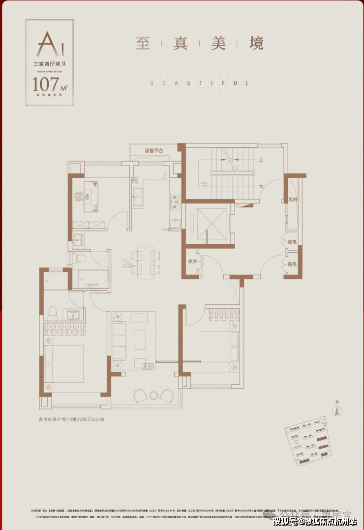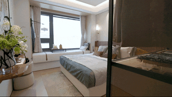 电视背景墙采用岩板交付,纹理自然,质感高级,彰显出主人独特的品味与格调。每一处装饰细节都经过精心考量,力求为业主打造一个既美观又实用的居住空间。还有建面约107㎡3房实景样板房同步公开,实现小面积里的“大满足”。整体面宽约9.8米,南北通透,所有卧室以及厨房都有飘窗设计,各个功能区域划分合理,动静分区明确,既保证了居住的舒适性,又满足了家庭成员不同的生活需求。