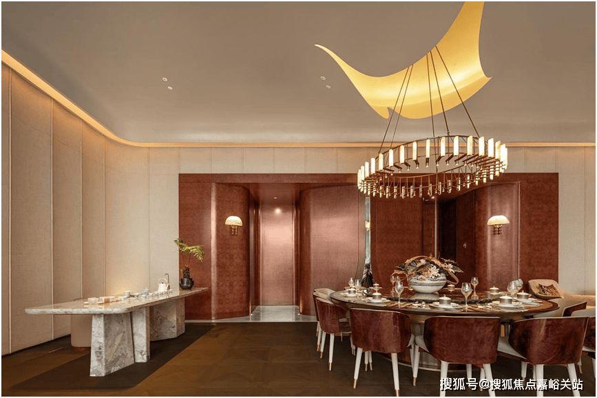 自然贯穿了整个社区公区的设计语言,整体约1200㎡立体会所+约1700㎡主题架空层,配备了私宴厅、瑜伽室、棋牌室等休闲空间。