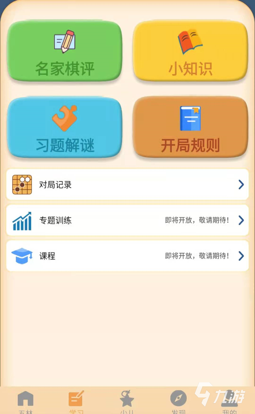 一款古典五子棋游戏,这款游戏适合各种水平的玩家,不太会玩的可以试试人机模式,熟练了以后可以在线和其他玩家匹配,感受一下真实的对局。软件中还有其他的功能,比如一些关于五子棋的小知识、知名大师对于棋局的分析,很适合新手小白。