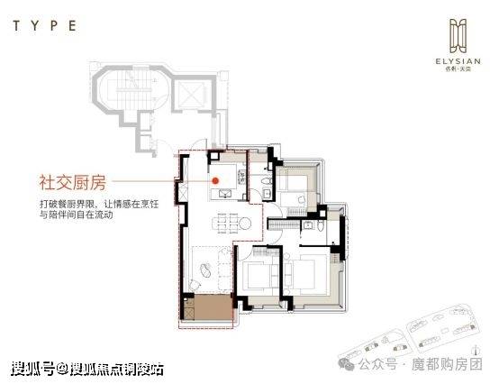 2.social厨房设计,开放式厨房水槽区转向餐厅一侧,杜绝消极空间让室内轻松连贯,也让情感交流、家庭互动在无界限。