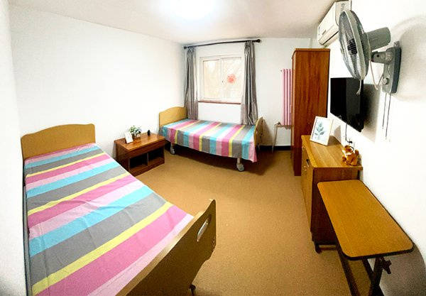 北京市朝阳区长友恒苑养老院院区占地面积8852.2平方米,建筑面积7191平方米,87间房间均为南向双人间,30余平米的空间宽敞明亮,保证充足采光与通风。所有房间均采用适老化设计,配备独立卫生间、空调,床头呼叫系统一键直达护理站,最大程度保障长者安全。相较于单人间的高价,双人间既能降低费用,又能让长者相互陪伴,避免孤独感,适合大多数家庭选择。