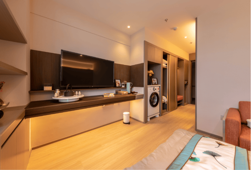 ▪️ 适老细节:全屋采用防滑地板、适老化家具、新风系统、地暖,全方位保障长者居住安全与舒适度;自理单间配备独立新风系统、适老化厨房(电磁炉+升降式橱柜),满足活力长者的烹饪需求;一居室设有专属会客区,方便家属探视交流。